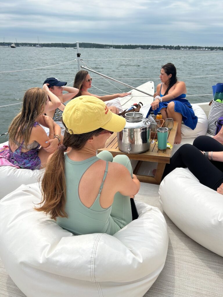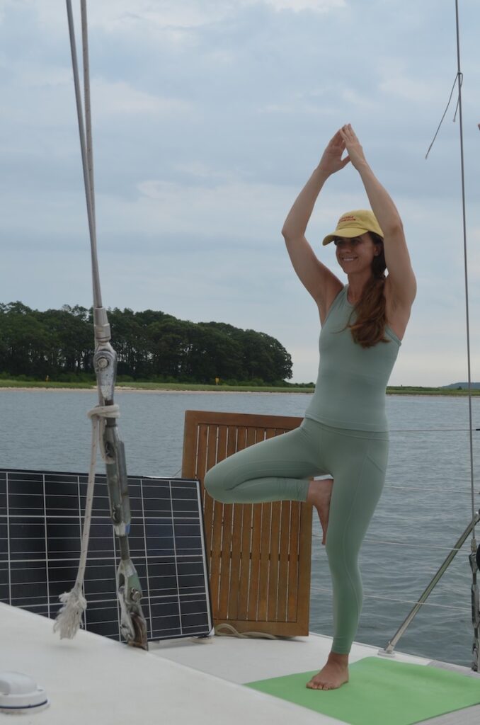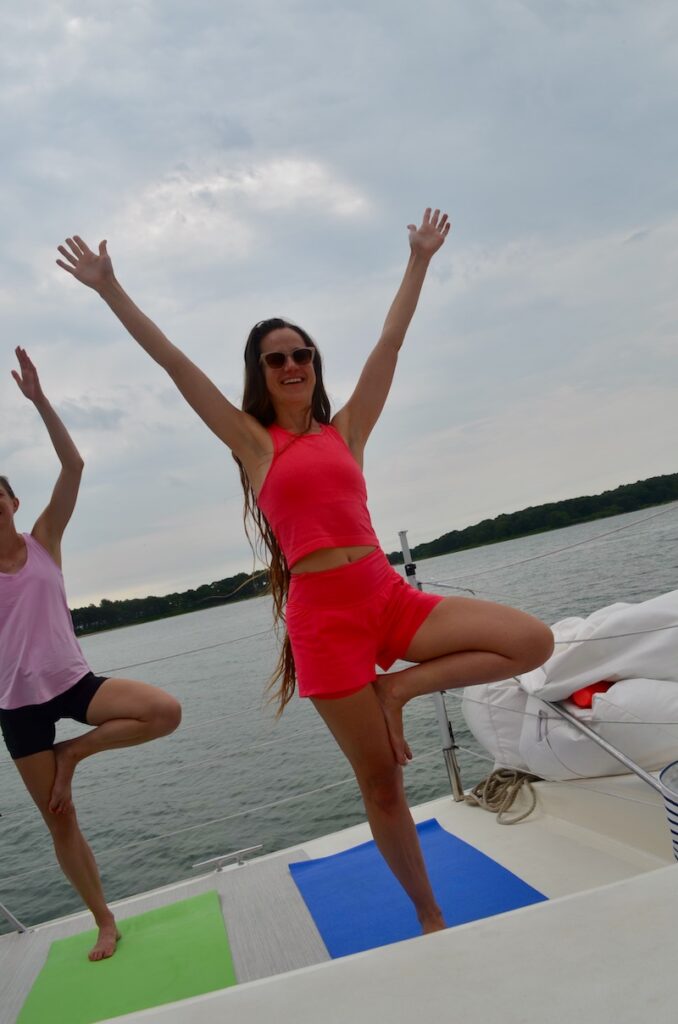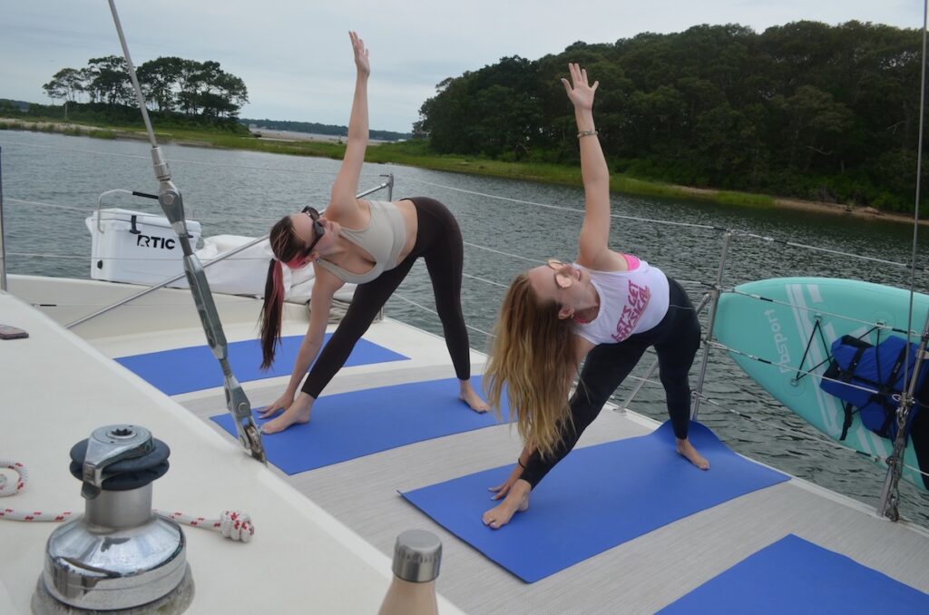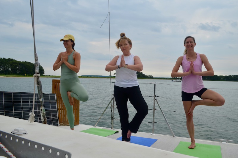 Experience the tranquility of the Hamptons Yoga Sailing journey, blending relaxation with the beauty of nature.